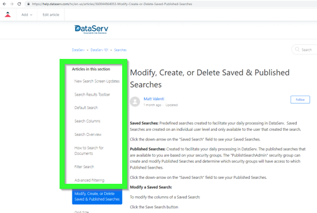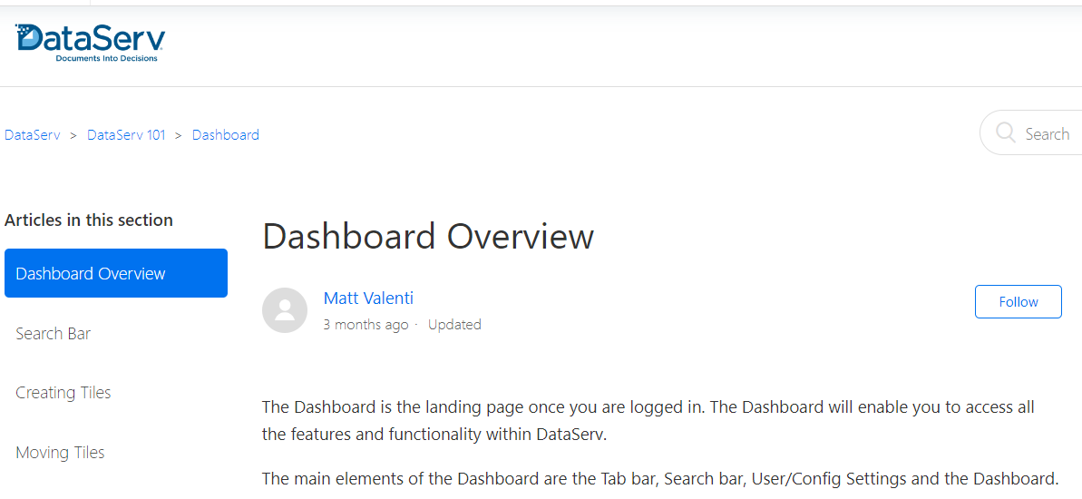 You can choose from the text boxes, such as ‘DataServ 101’, to browse articles.