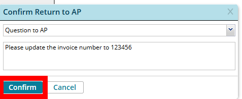 The 'Return to AP' button allows the exception handler the ability to send an invoice back to the AP Team for review.