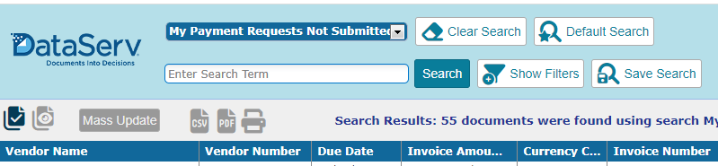 Once a Payment Request is submitted, it can be monitored in the 'My Payment Requests Pending Approval' published search.