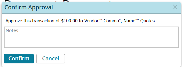 A confirmation box will appear where you can enter any notes and then select 'Confirm'.