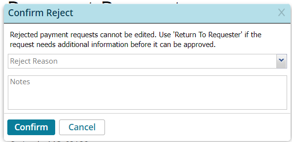 A confirmation box will appear. You will need to select a Reject Reason from the drop-down menu. You can also enter any necessary notes and click 'Confirm' once you are done.
