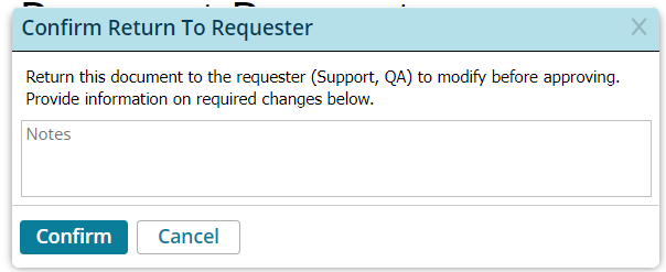 You can enter any notes to the requestor stating what info is required and then click the 'Confirm' once you are done.