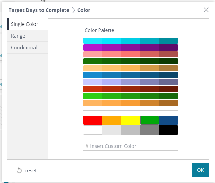 You can customize your Executive Dashboard including enabling and establishing targets or goals for your dashboard widgets or color coding the actual values based on ranges.