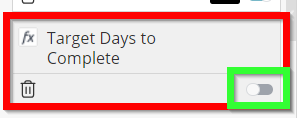 Enable the 'Target Days to Complete' value by clicking the slider in the bottom right corner.