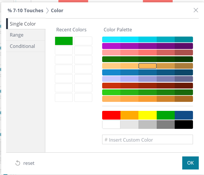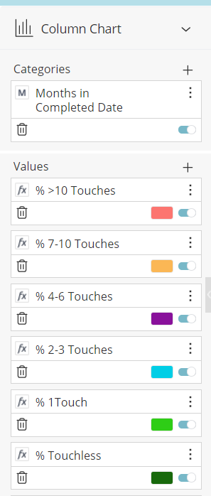 This widget breaks the number of touches into bands and colors them differently (E.g. 4-6 Touches).