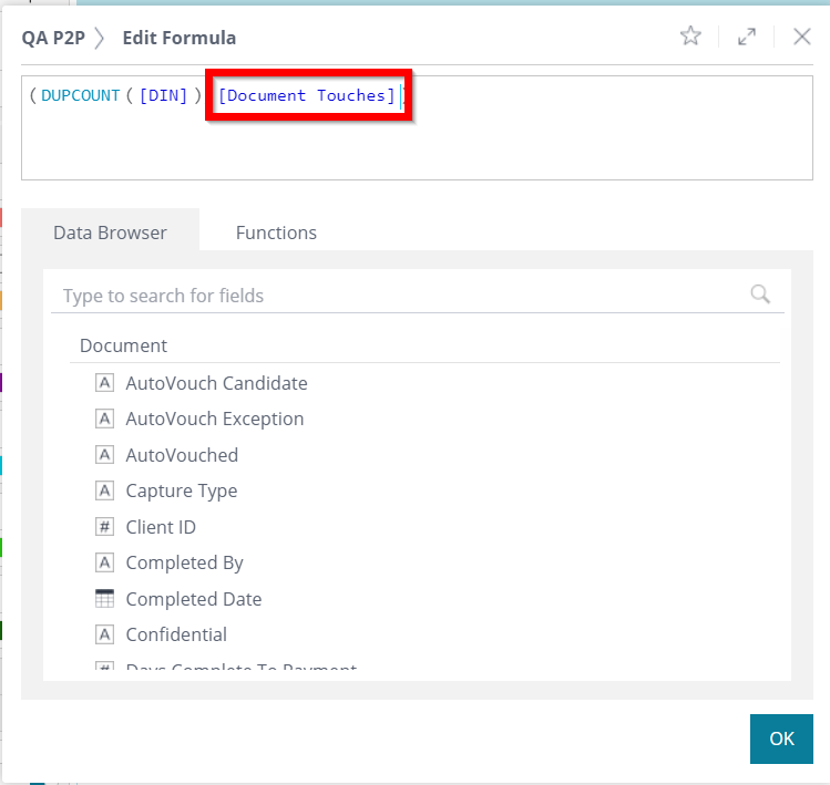 Click OK to close the Formula Editor.