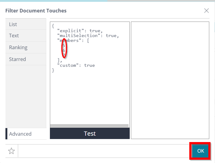 Edit the number of Touches you wish to include and click 'OK' to close the Filter Editor.